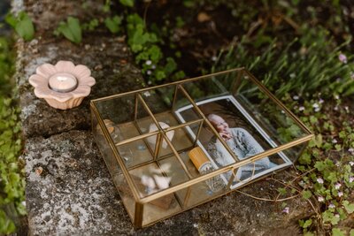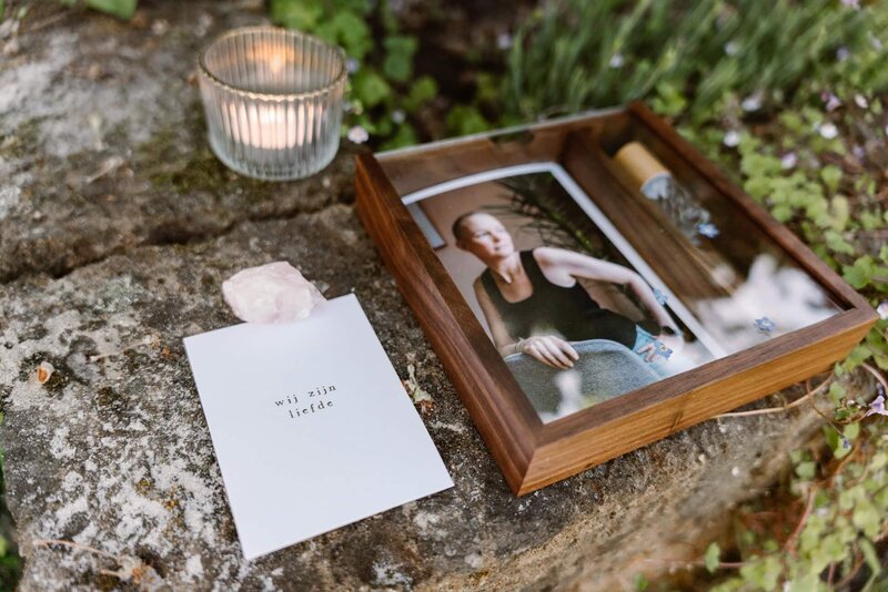 Voeg tot slot nog iets toe wat bij jou past; een mooie steen, een schelp, een gedroogde lievelingsbloem. Ik denk graag met je mee wat passend is.